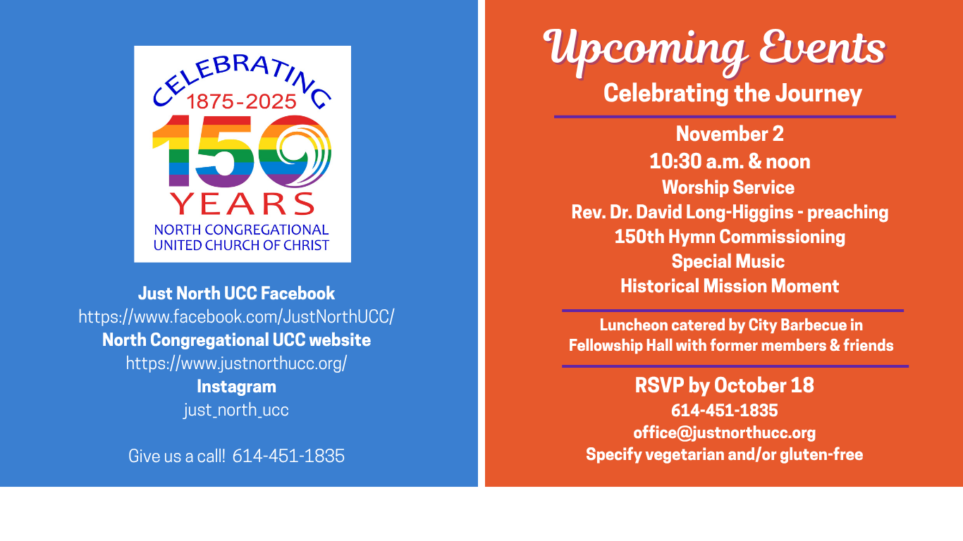 “North Congregational United Church of Christ is committed in word and deed to the Equality of all God’s people. We welcome and affirm persons of every race, gender, gender identity and/or expression, age, sexual orientation, nationality, ethnicity, family status, economic status, physical, mental, and emotional ability into full participation, membership and leadership in our faith community.”
